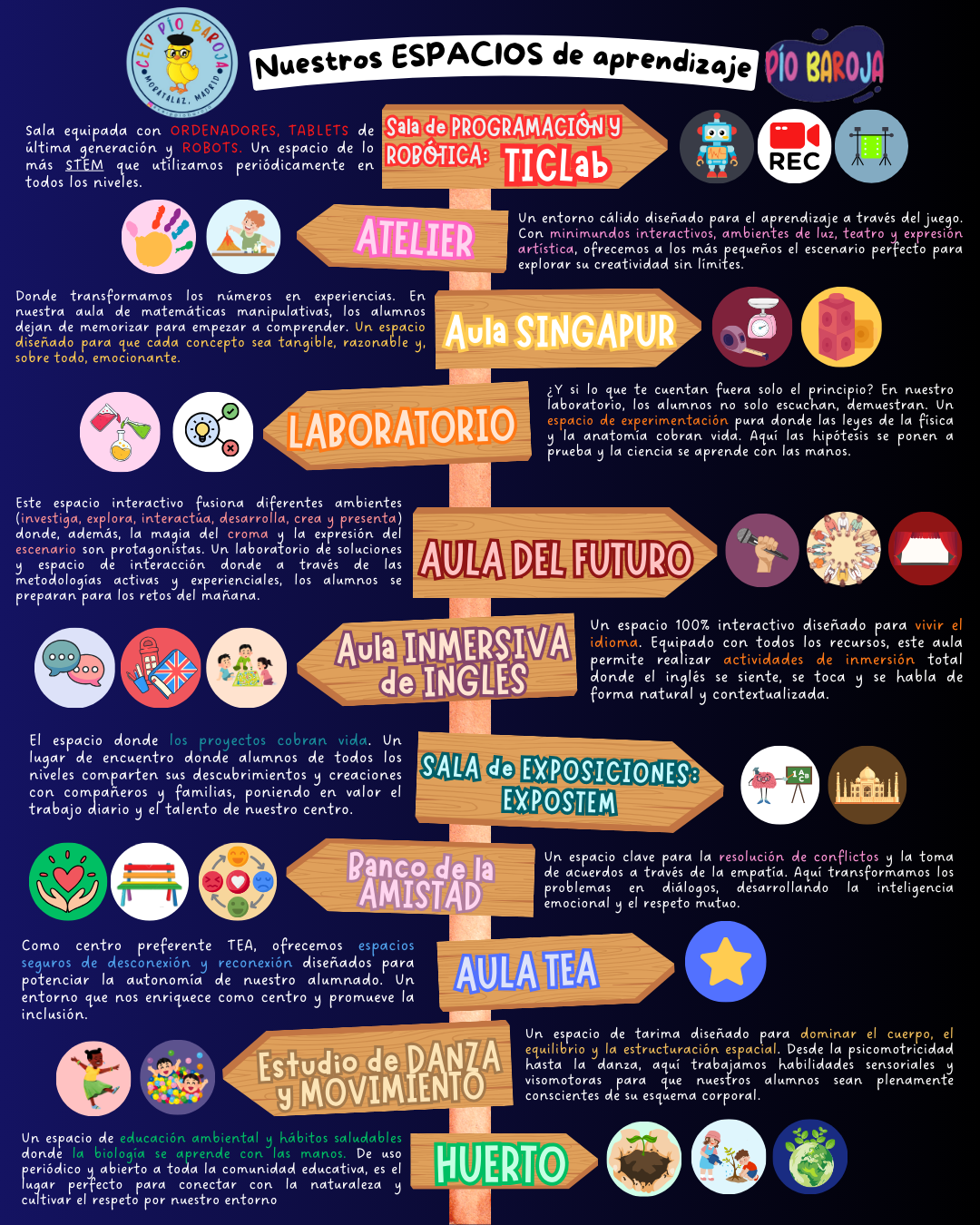 Trabajamos por Proyectos. Motivación, sorpresa e ilusión son la base de «Nuestros Proyectos», donde nuestros alumnos y alumnas son protagonistas de su propio aprendizaje. Nosotros, sólo ponemos los medios. Una meta, un objetivo común, hacia el que dirigirnos, cada uno a su ritmo. Superamos retos, buscamos información, elaboramos materiales y compartimos experiencias.
